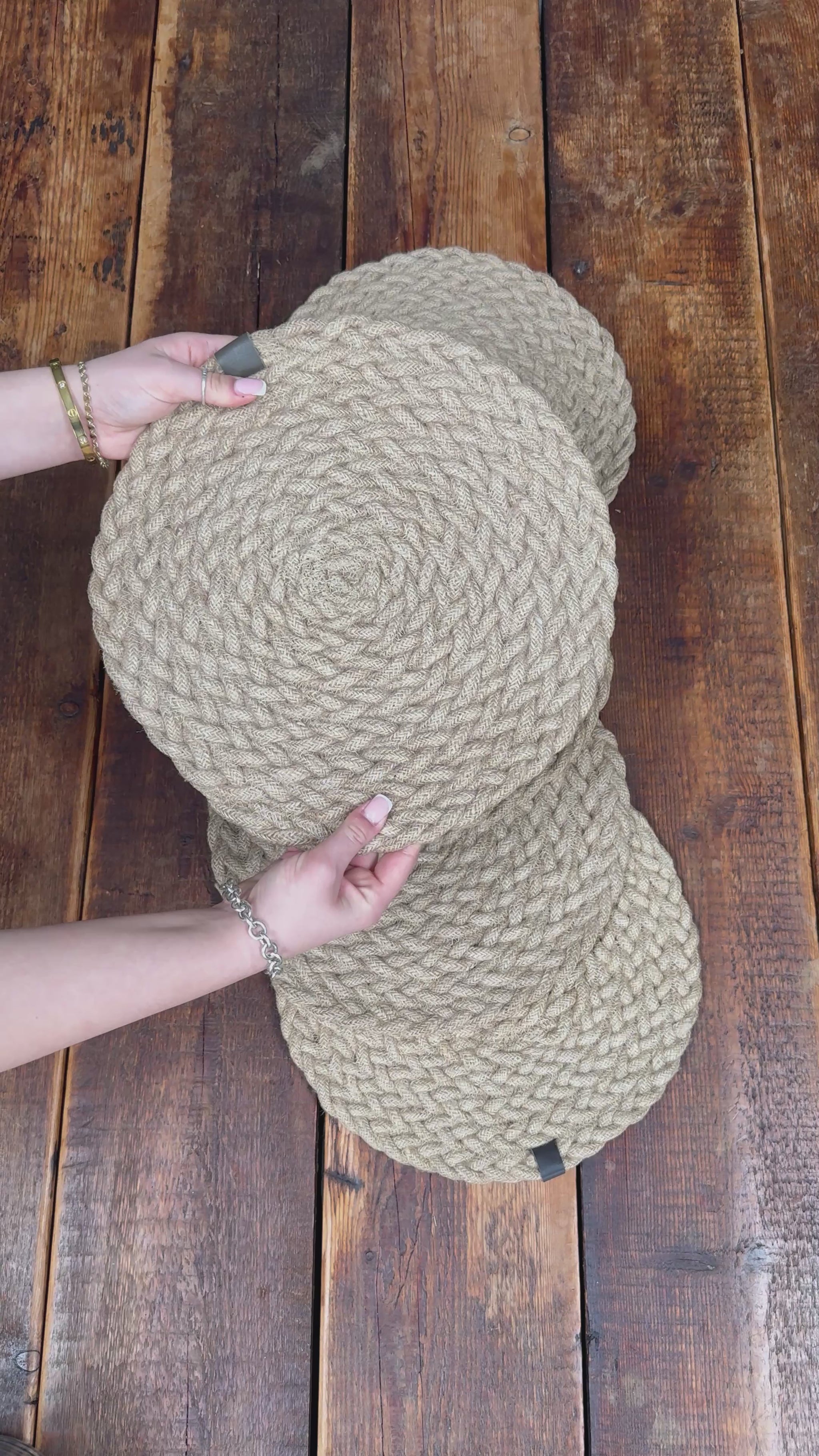 The organic fibres create an earthy, tactile presence, while the circular braid introduces order and calm. Durable, sustainable, and intentionally understated, it protects the surface while remaining visually unobtrusive.